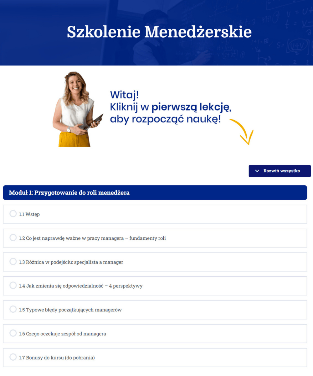 Dołącz do społeczności kursantów szkolenia online i zdobądź praktyczne umiejętności. Szkolenie menedżerskie stanowi solidny fundament do rozwoju. Zwiększ swoją wartość na rynku biznesowym.